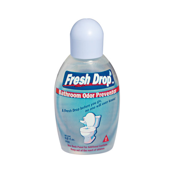 Can I just say that I wish I had invented this product? It’s Fresh Drop Bathroom Odor Preventor. OMG! A lifesaver when you are traveling. I just got back from vacation, and the bathroom didn’t have a fan (which is unusual).  I put this little gem next to the toilet and reminded both my husband and son to use it before going number two.